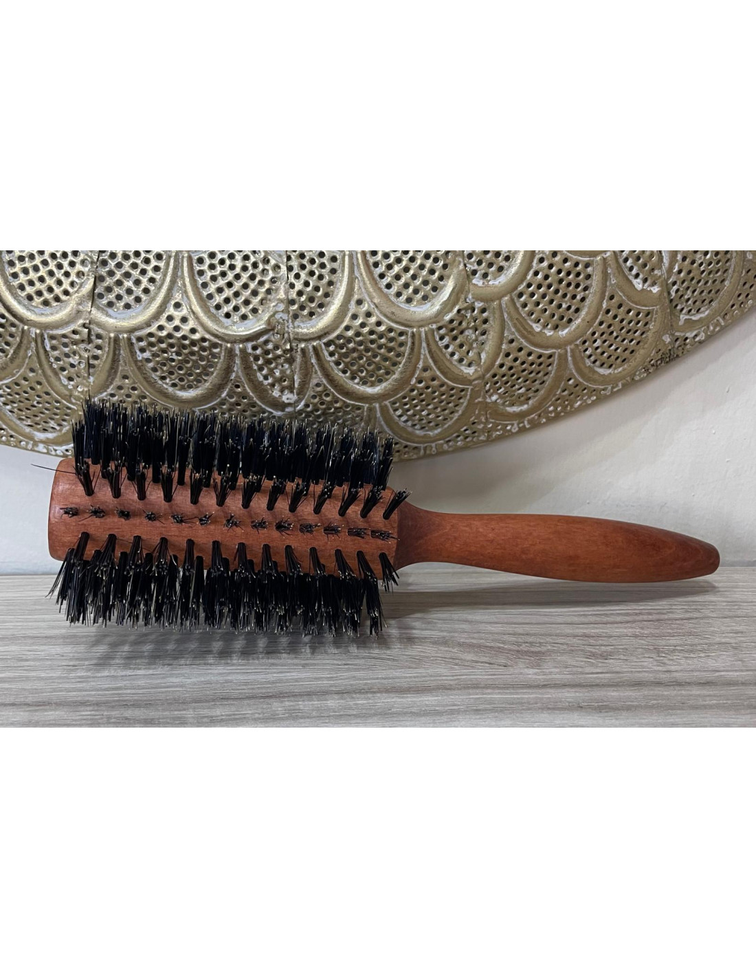 Nuestro cepillo redondo combina la nobleza de la madera con la suavidad de las cerdas de jabalí. A diferencia de los cepillos sintéticos, este modelo trata tu cabello con delicadeza, evitando la electricidad estática y respetando la salud de tu melena.