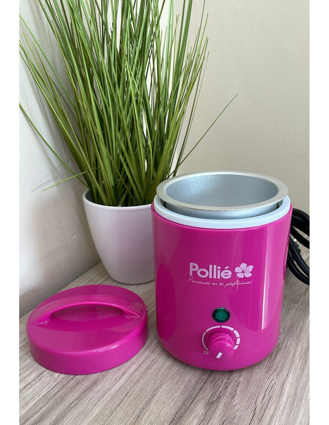 El Pollié Fusor de Cera, uno de los dispositivos más compactos del mercado, diseñado especialmente para áreas pequeñas que no requieren grandes cantidades de cera. Gracias a su tamaño reducido, es fácil de guardar en cualquier espacio, ocupando muy poco lugar. Este calentador cuenta con una superficie antiadherente, lo que facilita enormemente su limpieza. Además, dispone de un control de temperatura variable para ajustarla a tus necesidades específicas y un sistema de calentamiento rápido que te permite empezar tu sesión en poco tiempo. Su tapa protectora ayuda a mantener la cera caliente segura y protegida. También incluye un cubo extraíble para una limpieza aún más sencilla.