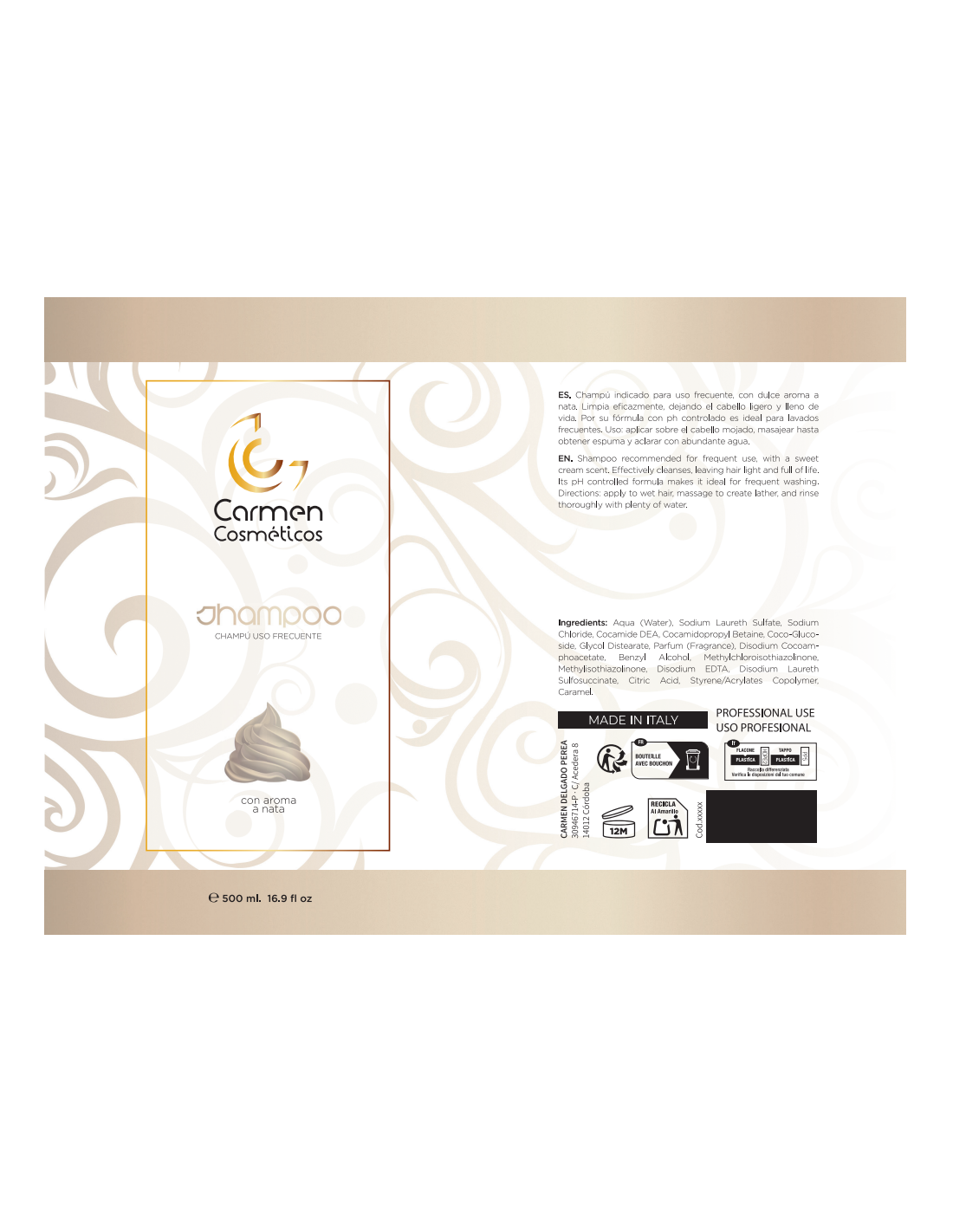 Champú diario con aroma a nata de Carmen Cosméticos 500 ml (PREVENTA)