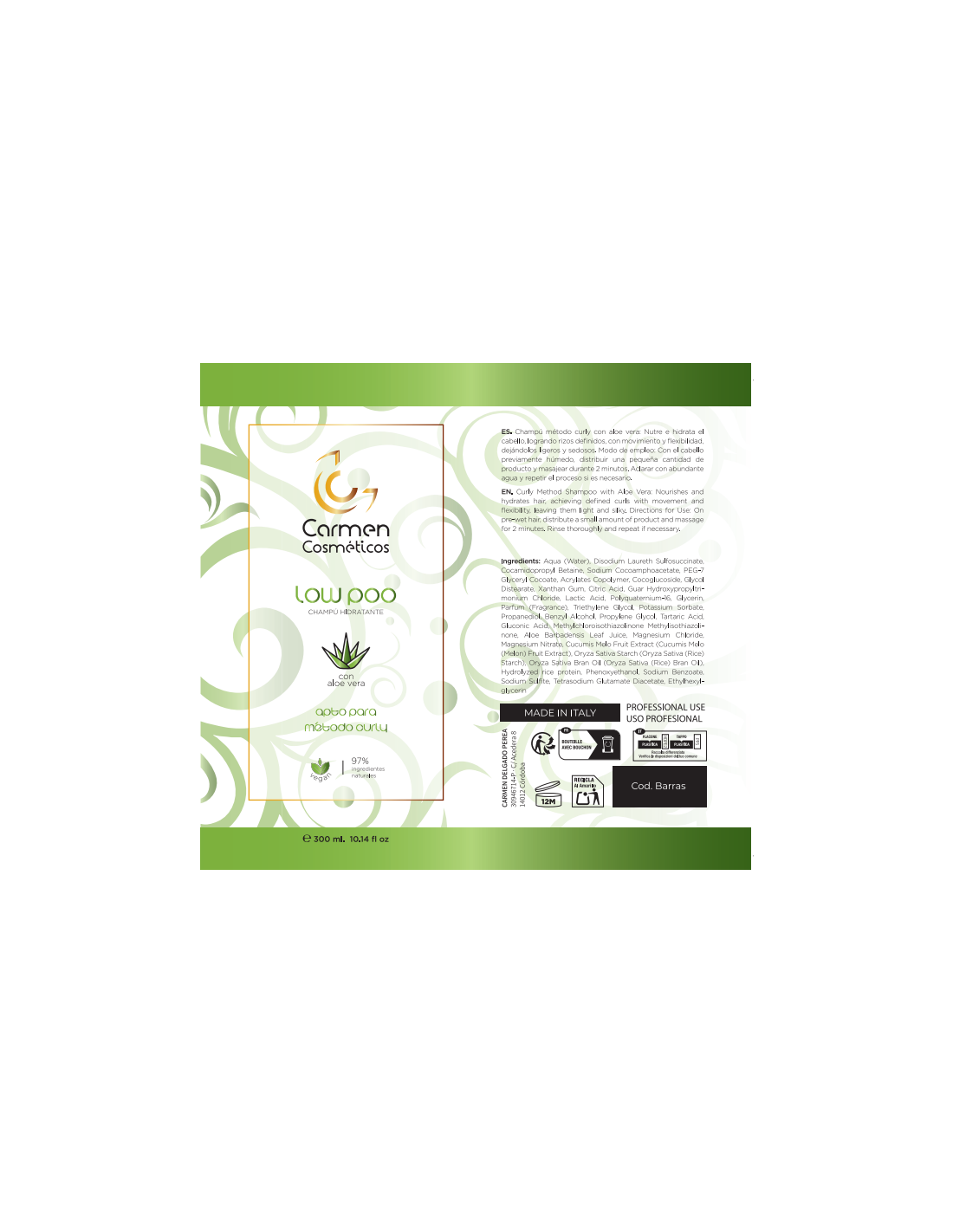 Con el Low Poo Champú Hidratante Vegano de Carmen Cosméticos disfrutarás de rizos suaves, hidratados y perfectamente definidos, sin frizz y con un movimiento natural y flexible.