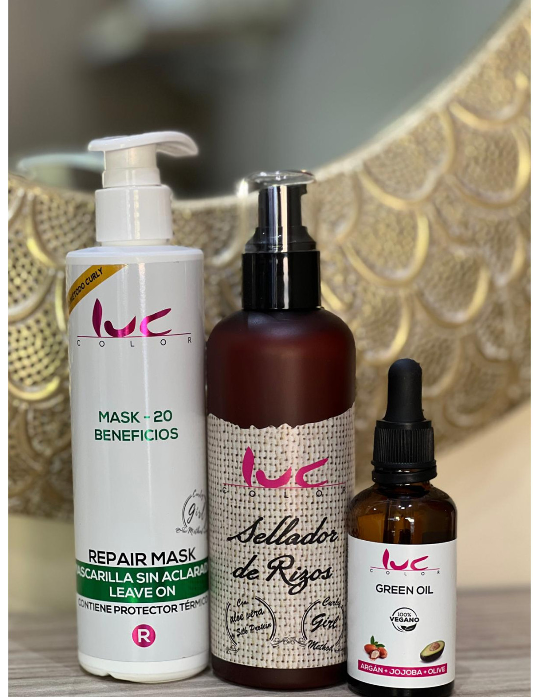 Protege y revitaliza tu cabello durante el verano con el Pack protector de cabello para piscina o playa de Carmen Cosméticos. Este pack incluye tres productos indispensables: la Mascarilla sin aclarado con Keratina Curly, el Sellador Curly orgánico y el Aceite Vegano LUC Green Oil. La mascarilla repara y protege el cabello de los elementos dañinos como el sol, el cloro y la sal del mar. El sellador actúa como acondicionador y fijador, eliminando el frizz. El aceite vegano combate la caída del cabello y proporciona hidratación. Al mezclar los tres productos, se obtiene una poderosa combinación para proteger tu cabello antes y después de estar en la piscina o la playa. Disfruta de un cabello saludable y radiante con este completo pack de protección capilar.