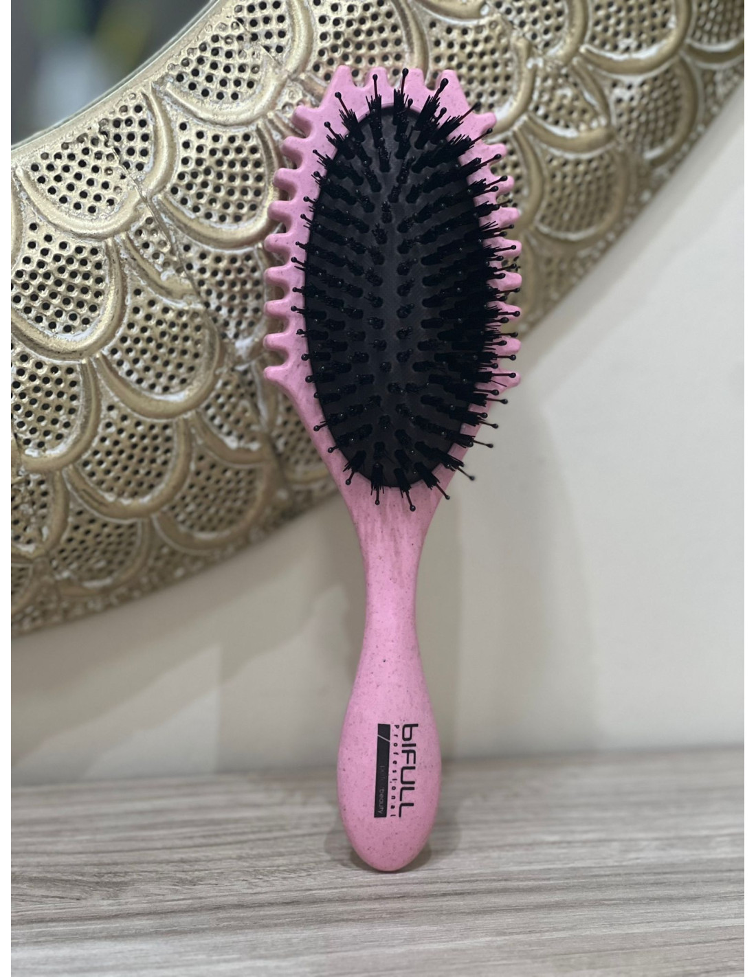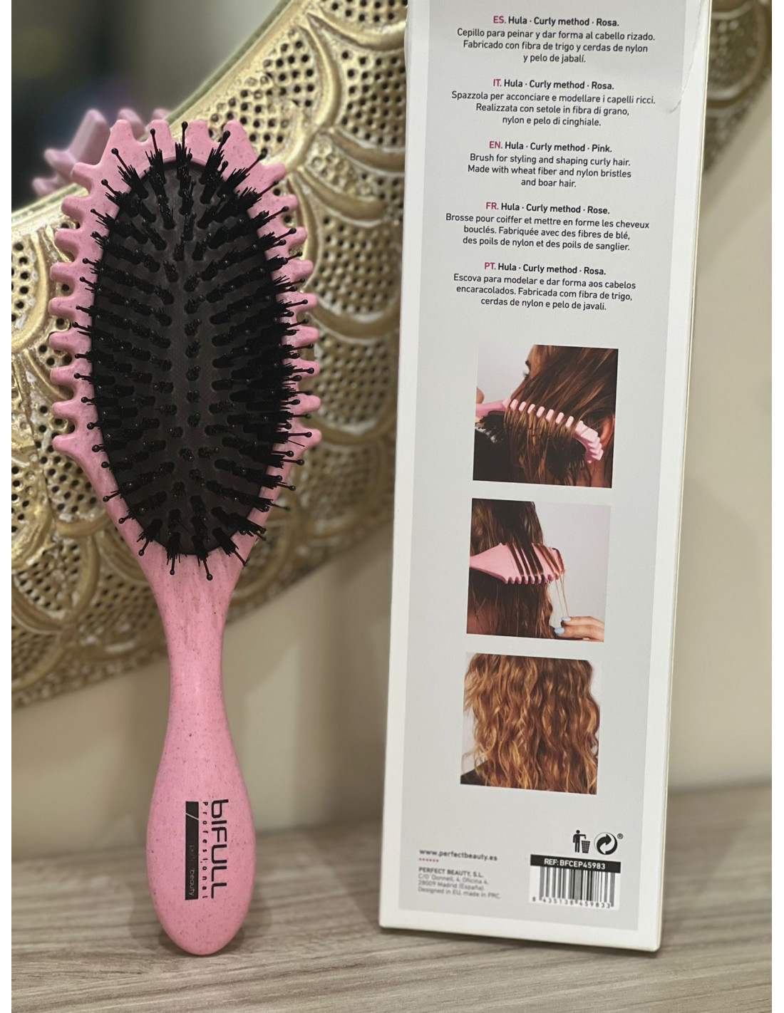 El Cepillo Hula Bifull Curly Method Rosa es un cepillo especializado para definir y peinar rizos, con cerdas de nylon y pelo de jabalí, ideal para el Método Curly.