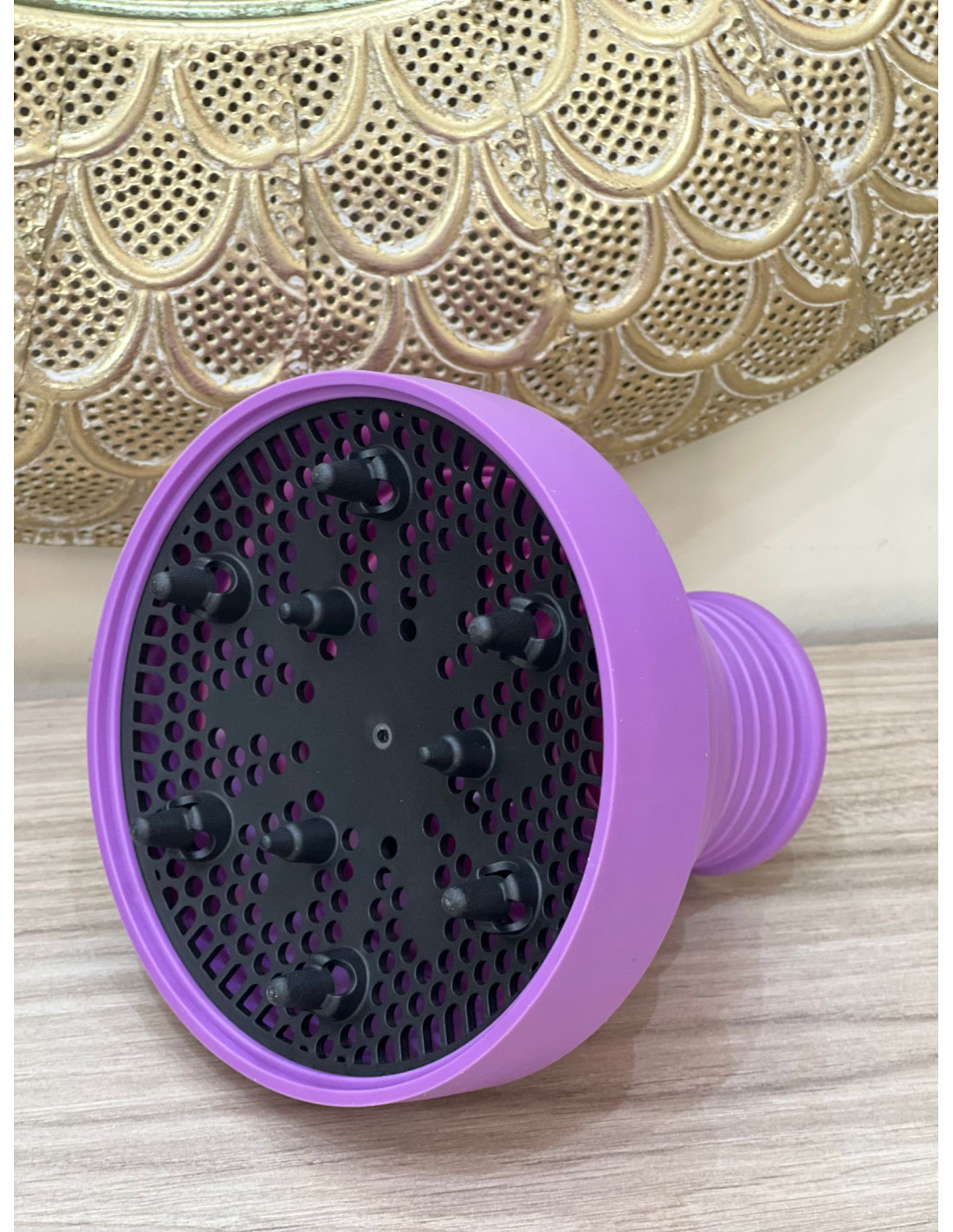Este difusor te permitirá conseguir rizos más definidos y voluminosos, protegiendo tu cabello de los daños ocasionados por el calor. Su diseño plegable lo convierte en un accesorio práctico y fácil de llevar a cualquier parte, mientras que su material de silicona asegura una distribución adecuada del calor, manteniendo la salud de tu cabello.