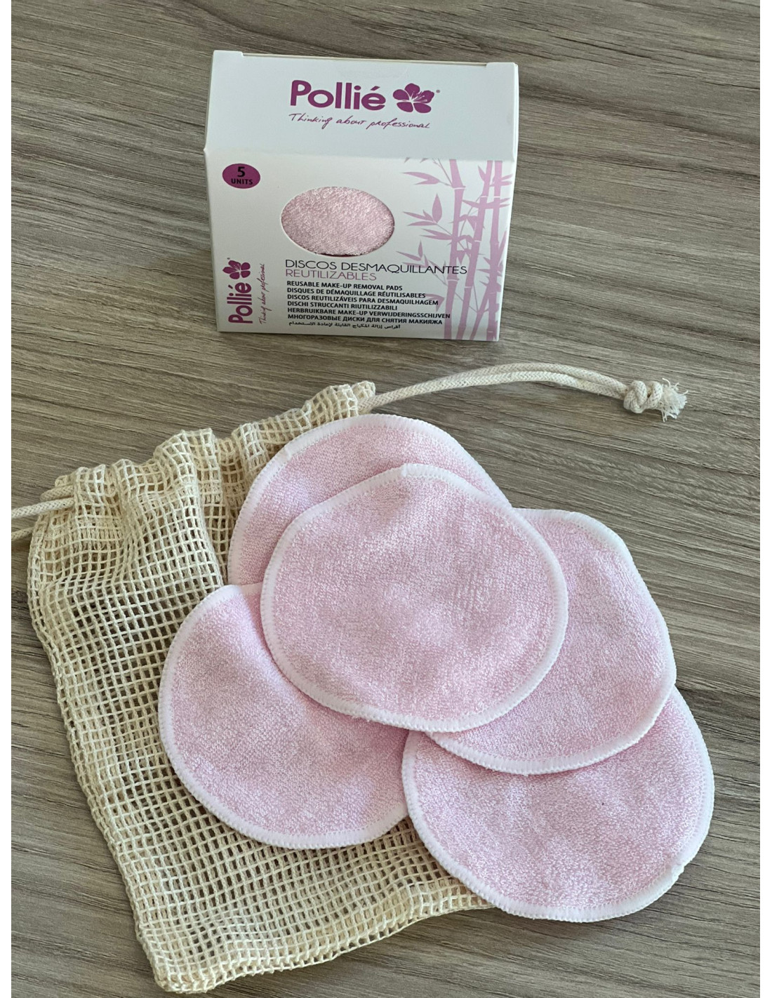 Discos Reutilizables y lavables 5 uds, hechos con fibra de bambú, apto para todo tipo de pieles, limpia y desmaquilla suavemente el rostro y los ojos, incluye una bolsita reutilizable.