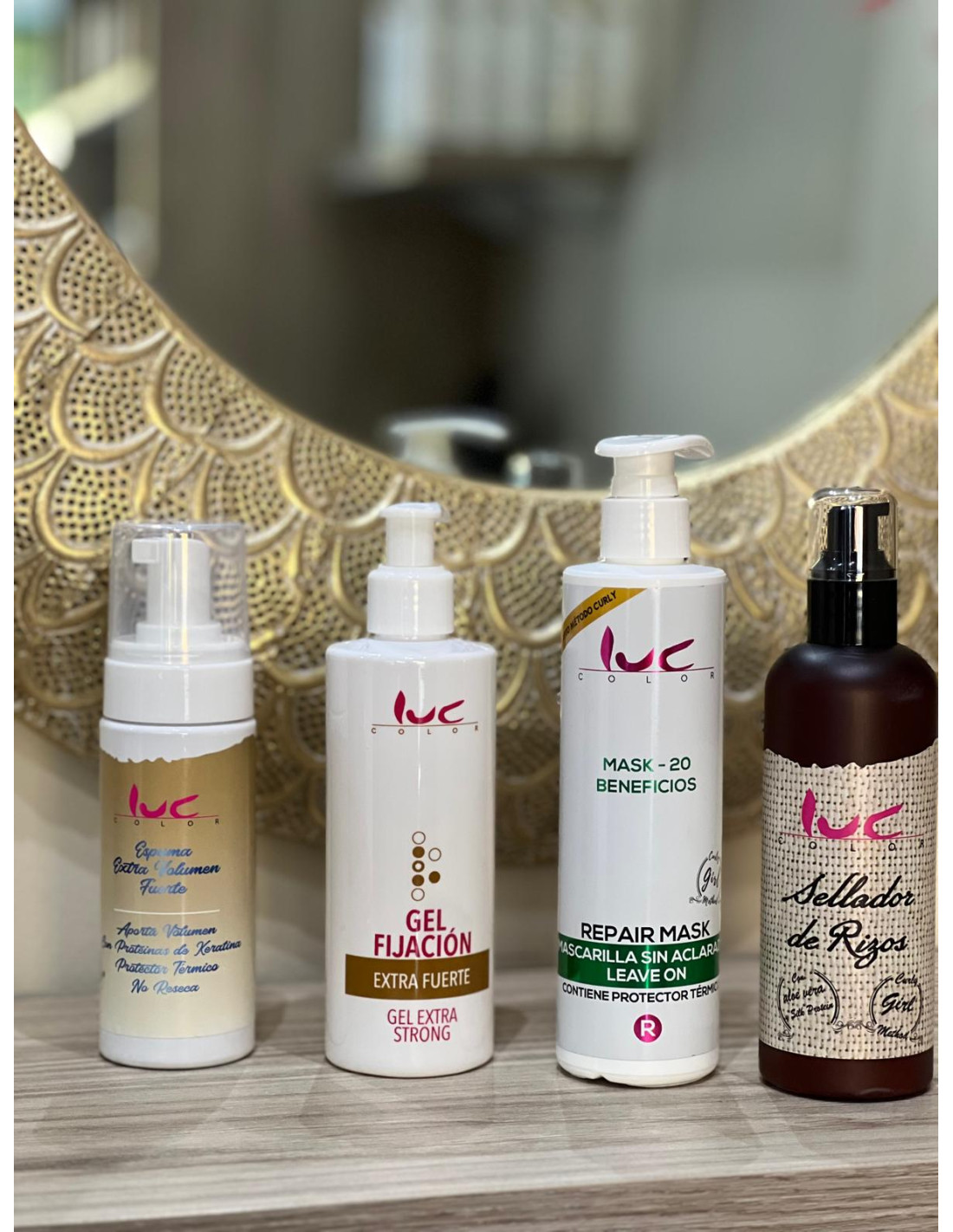 O "Pacote para Definição Equilibrada do Cabelo" inclui uma seleção de produtos especializados para alcançar uma definição equilibrada do cabelo. Contém um Selante Curly Orgânico de 250 ml, uma Espuma Extra Volume Forte LUC Color de 160 ml e um Gel Extra Forte New Style de 200 ml. Além disso, é complementado com uma Máscara sem Enxágue com Queratina Curly de 250 ml. Esses produtos oferecem fixação, hidratação, brilho e vitalidade, adaptando-se a diferentes estilos e tipos de cabelo.
