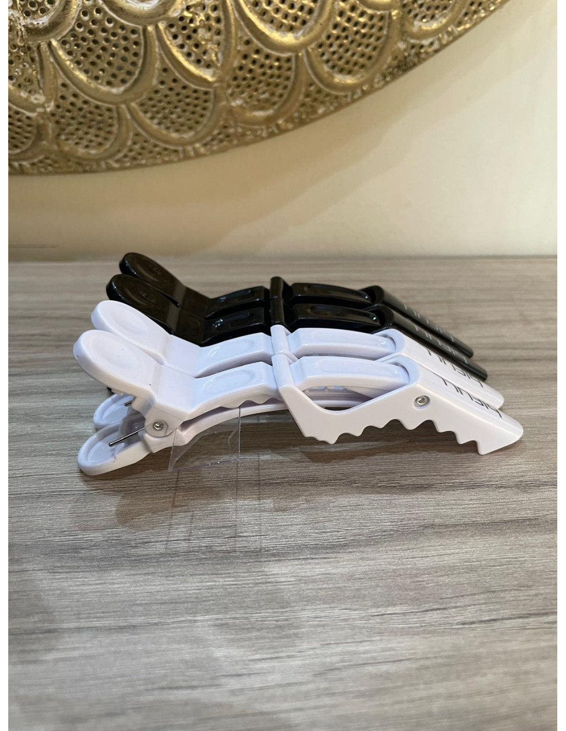 Os Clamp de Crocodilo para cabelo Asuer são suficientemente resistentes para lidar com qualquer tipo de cabelo. São compostos de material e design de aderência antiderrapante para evitar que escorreguem, mesmo com as mãos molhadas. Vêm em pacotes de 4 unidades.