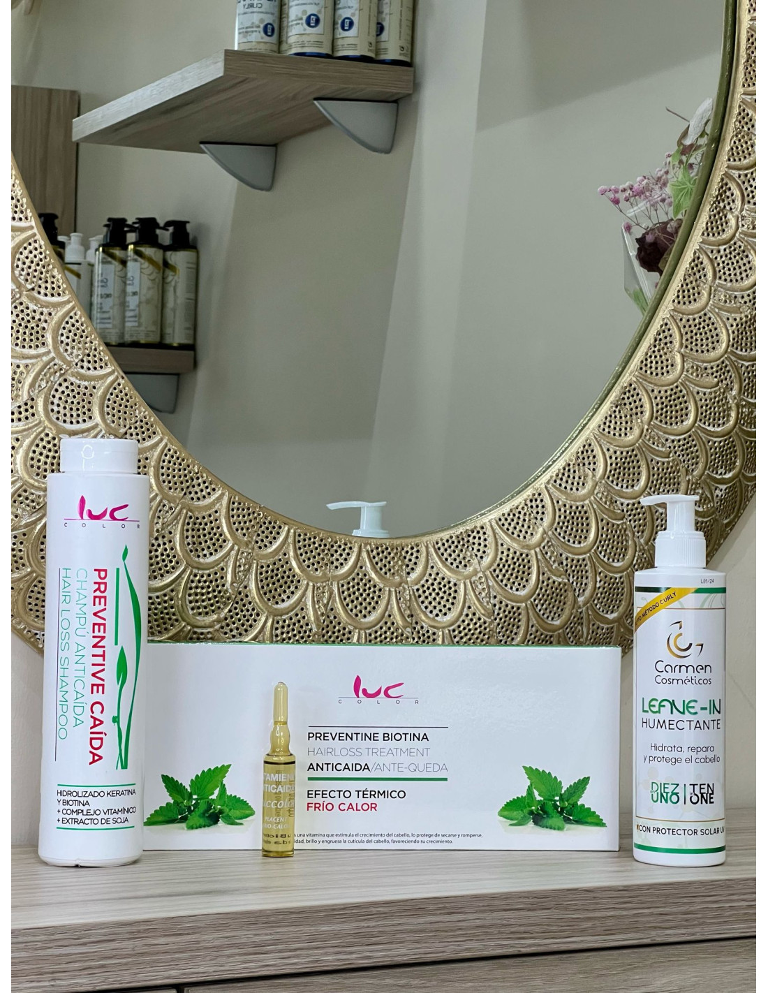 El Champú Anticaída Preventine está formulado con biotina, queratina e ingredientes naturales que limpian profundamente el cuero cabelludo, fortaleciendo el cabello desde la raíz. Su acción limpiadora y revitalizante ayuda a reducir la caída capilar, favoreciendo un crecimiento más fuerte y saludable. Este champú es ideal para quienes buscan una solución efectiva para prevenir la caída y mejorar la densidad del cabello.